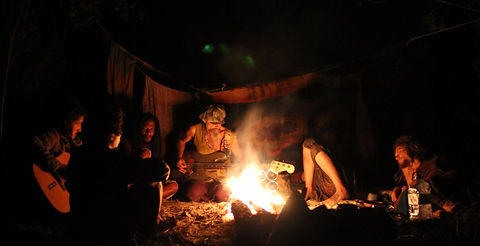 Mon campement prend forme, les gens de tout horizon viennent profiter du feu et de la musique...